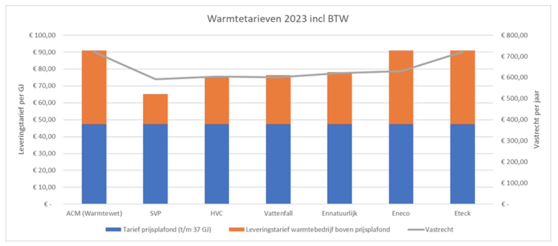 Wel is de SVP nog steeds de goedkoopste aanbieder van stadsverwarming in Nederland en dit al twee jaar op een rij. Zo betaal je bij Vattenfall een tarief van € 76,45 per GJ. Energieleverancier Eneco brengt, het maximale vastgestelde tarief van de ACM, namelijk € 90,91 per GJ in rekening. Bij HVC betaal je € 75,63 per GJ. Bij de SVP in Purmerend betaal je een tarief van € 65,21 per GJ.